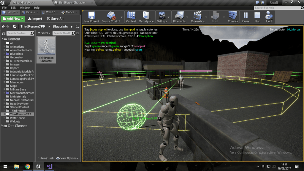 Once the code was compiled I tested the behaviour of the code and what I got was the true log when I was inside the AI Sight range and he can see the the character’s location point, and false also inside the range but with the visibility blocked. Out the Sight range the method wasn’t called.