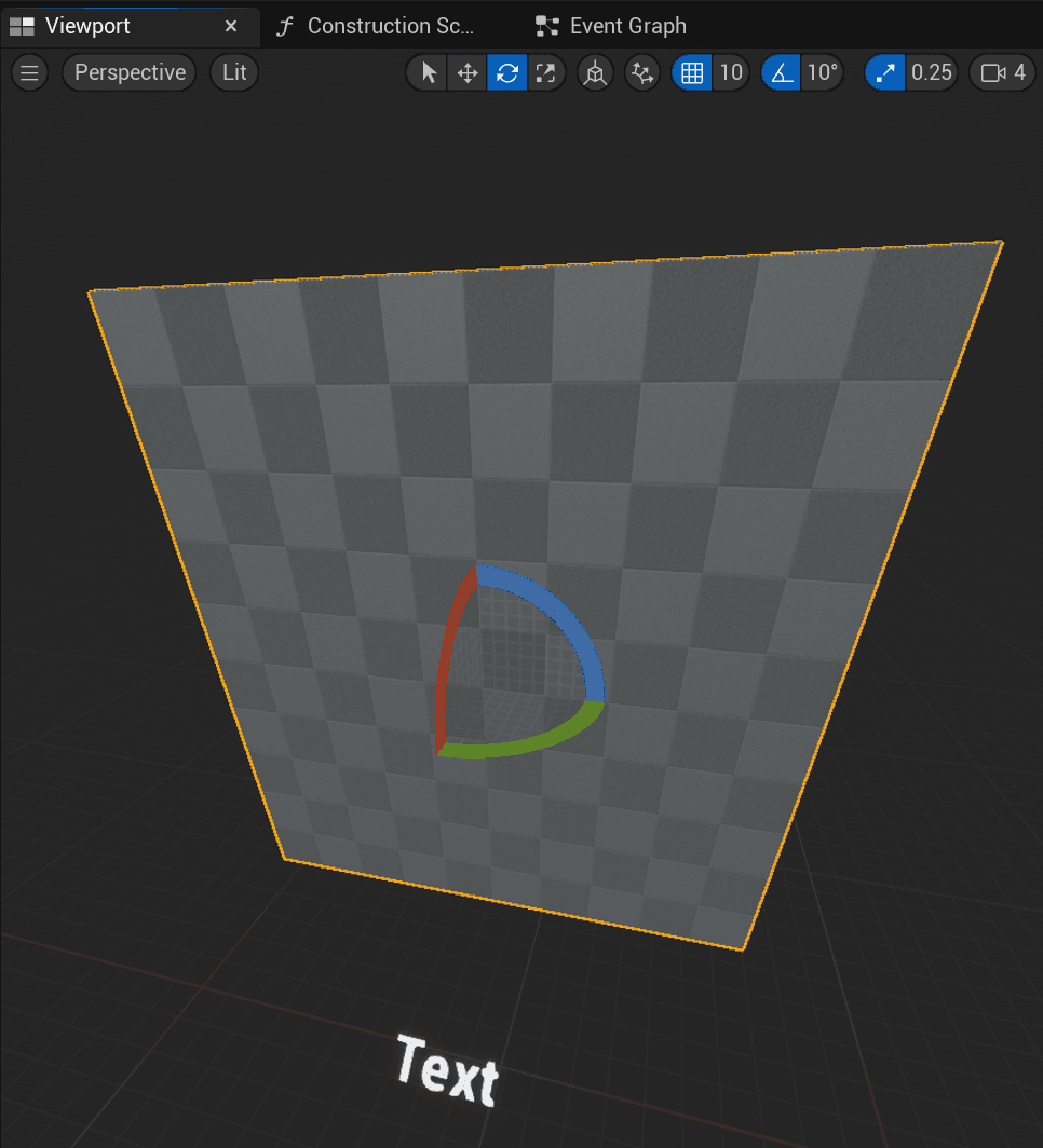 We could have set the default position and orientation of our plane and text in C++ code, or created an instance by drag-and-dropping the class from the Content browser into the map and then edit the values in the Details panel