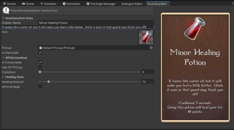 It’s time to start adding some ActionItems to our RPG. Most of the groundwork has been laid in the Inventory course, but there isn’t a very practical example of an action. We’re going to create a simple healing spell Action that doubles as a spell and a potion.