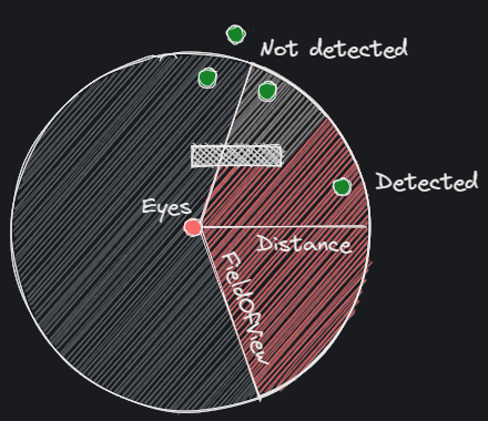 When a detectable object is inside the zone, the Eyes component needs to perform just one extra test to find out whether the object is occluded or not.