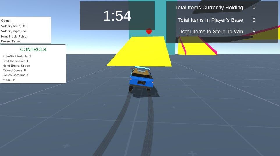 The first small demo game I made was a driving game where you had to collect all the red spheres hidden around an obstacle course within the time limit. I didn't end up publishing this one, but I built in just a couple of days with assets from the Unity Asset Store. I learned a lot!