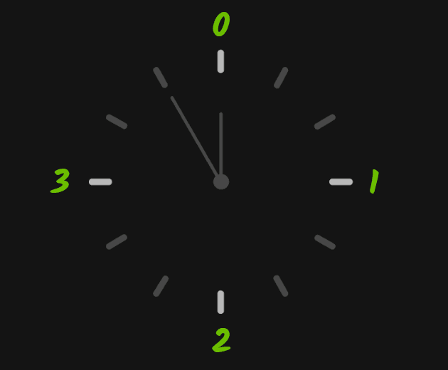 You may have noticed that if we put these numbers on a clock face, starting from noon and moving clockwise to 3, 6, and 9 o'clock, the directions match with directions of hands.