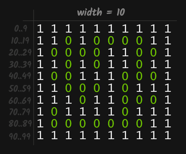 We can have our maze stored in memory as a flat, continuous block of numbers and, still, treat it like a 2D array. As long as we're consistent with the width of our maze, we can get away using this relationship: