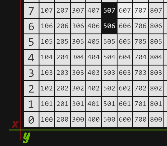 Maze.Set(5 + 2, 5, 0); // => Data[(5 + 2) + 5 * 100] = 0 => Data[507] = 0;