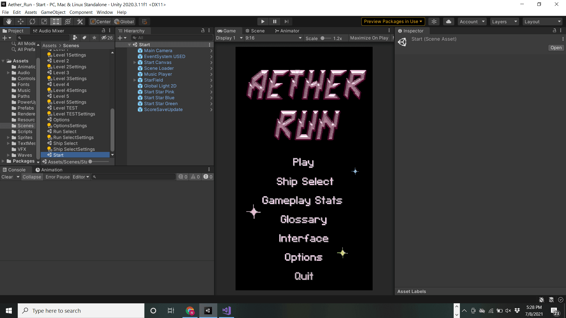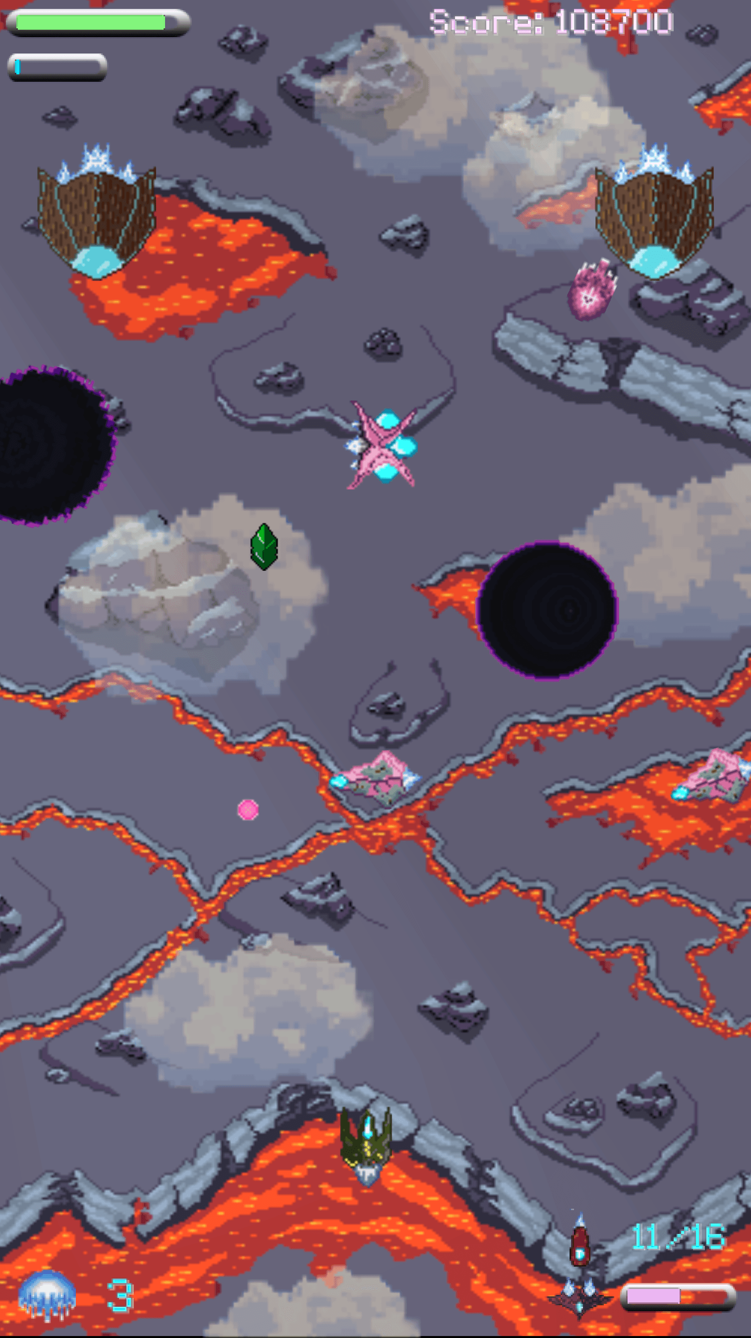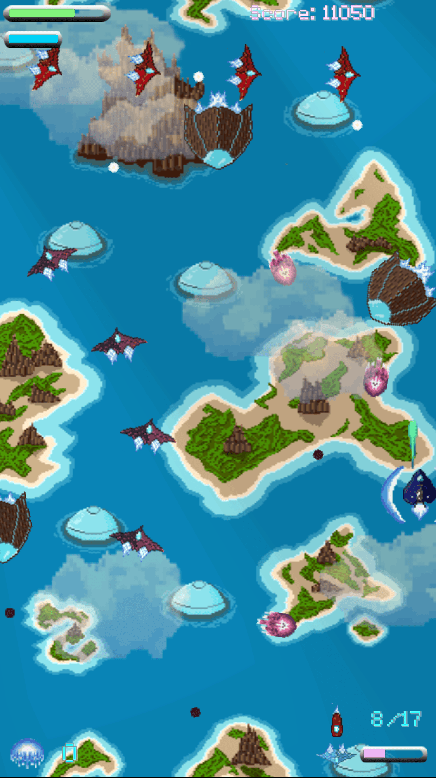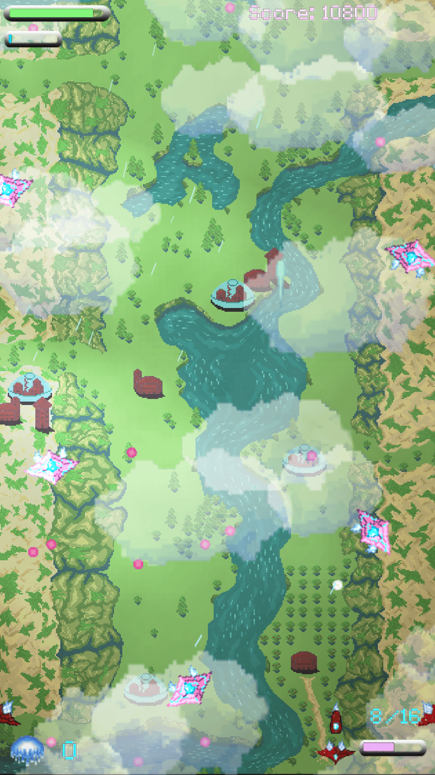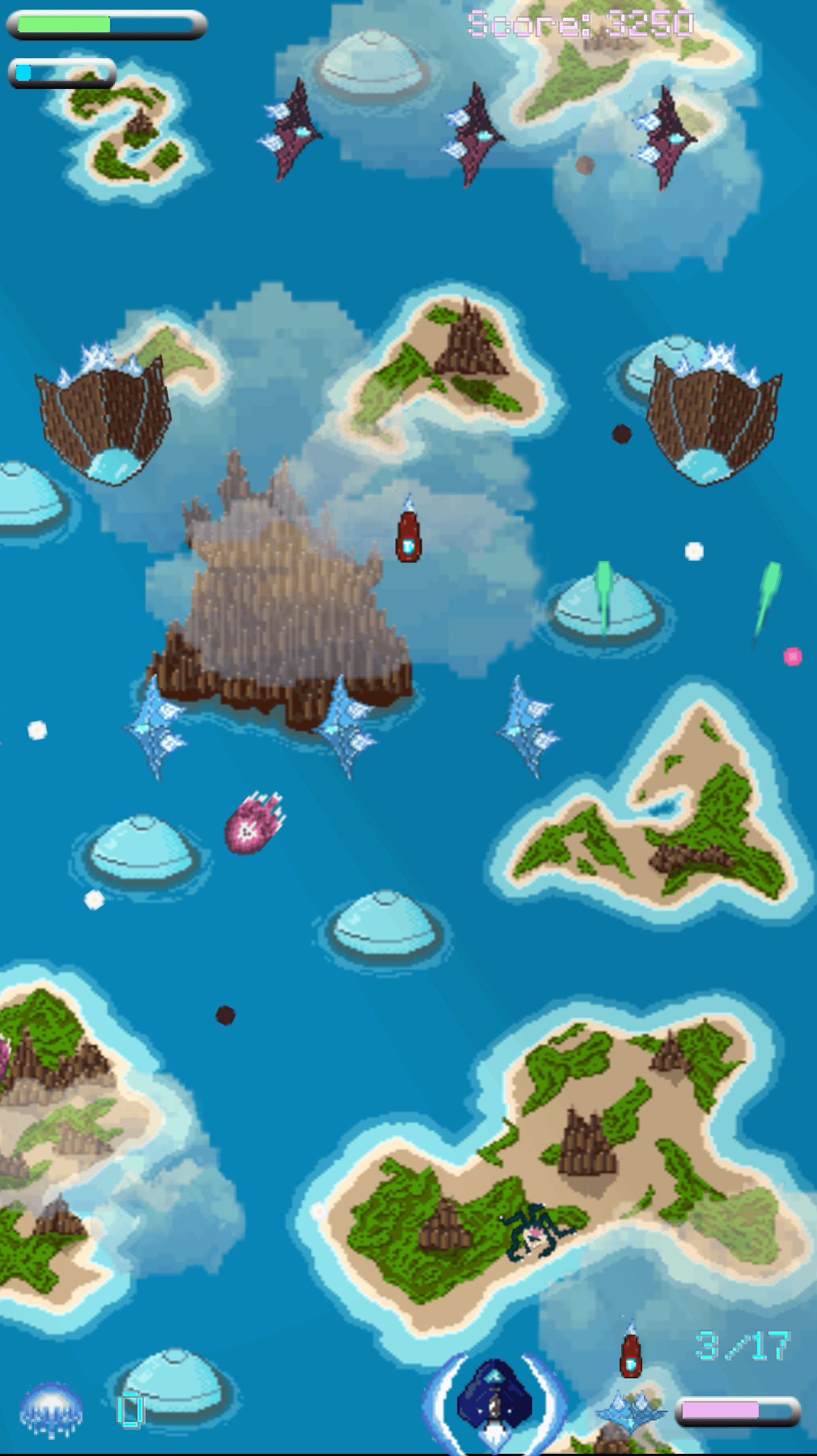 - I added two player ship options. One ship is slower, takes less damage from each hit, and delivers more damage with each aether laser it fires. The other ship is significantly faster but more fragile and deals less damage.