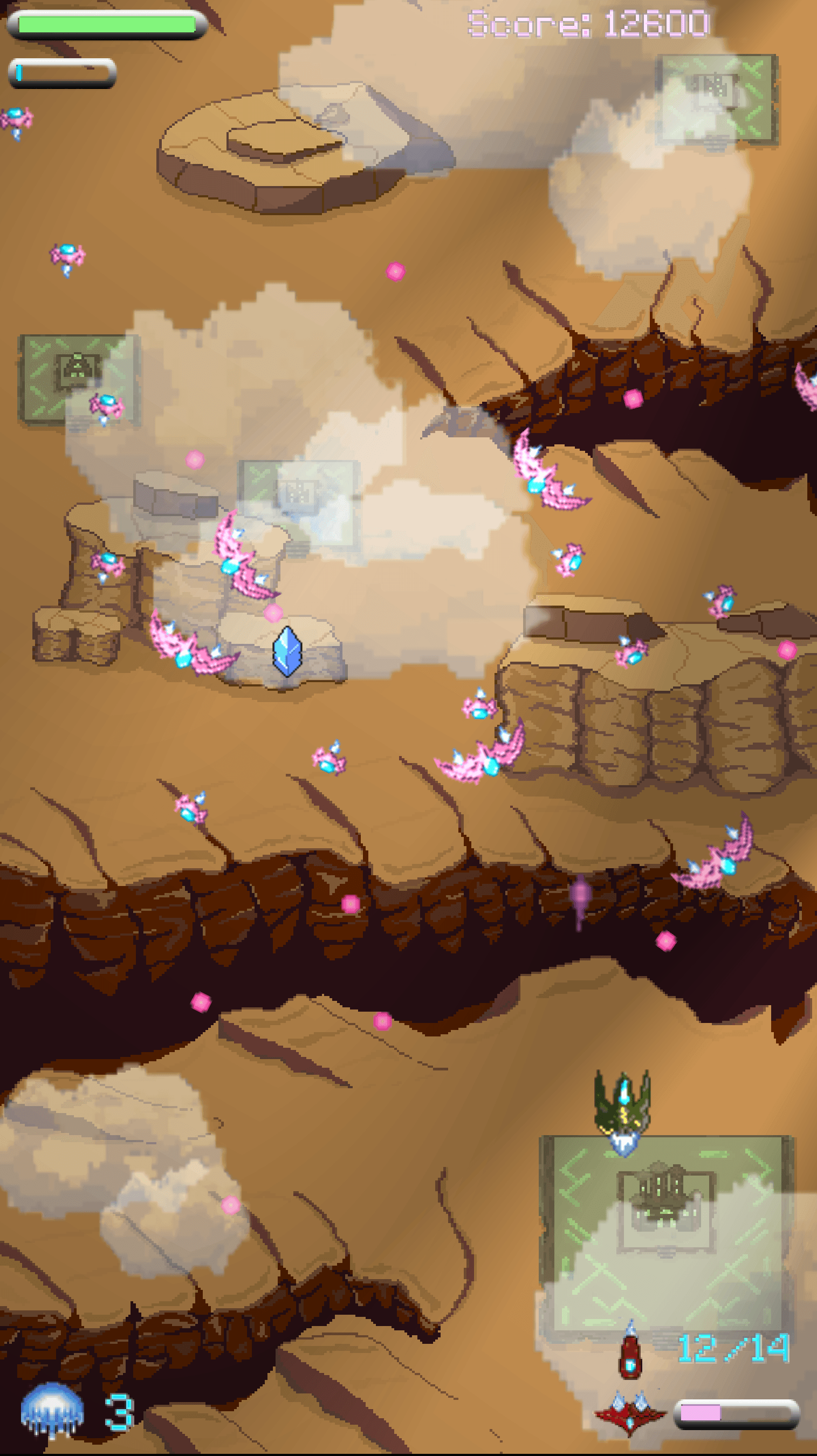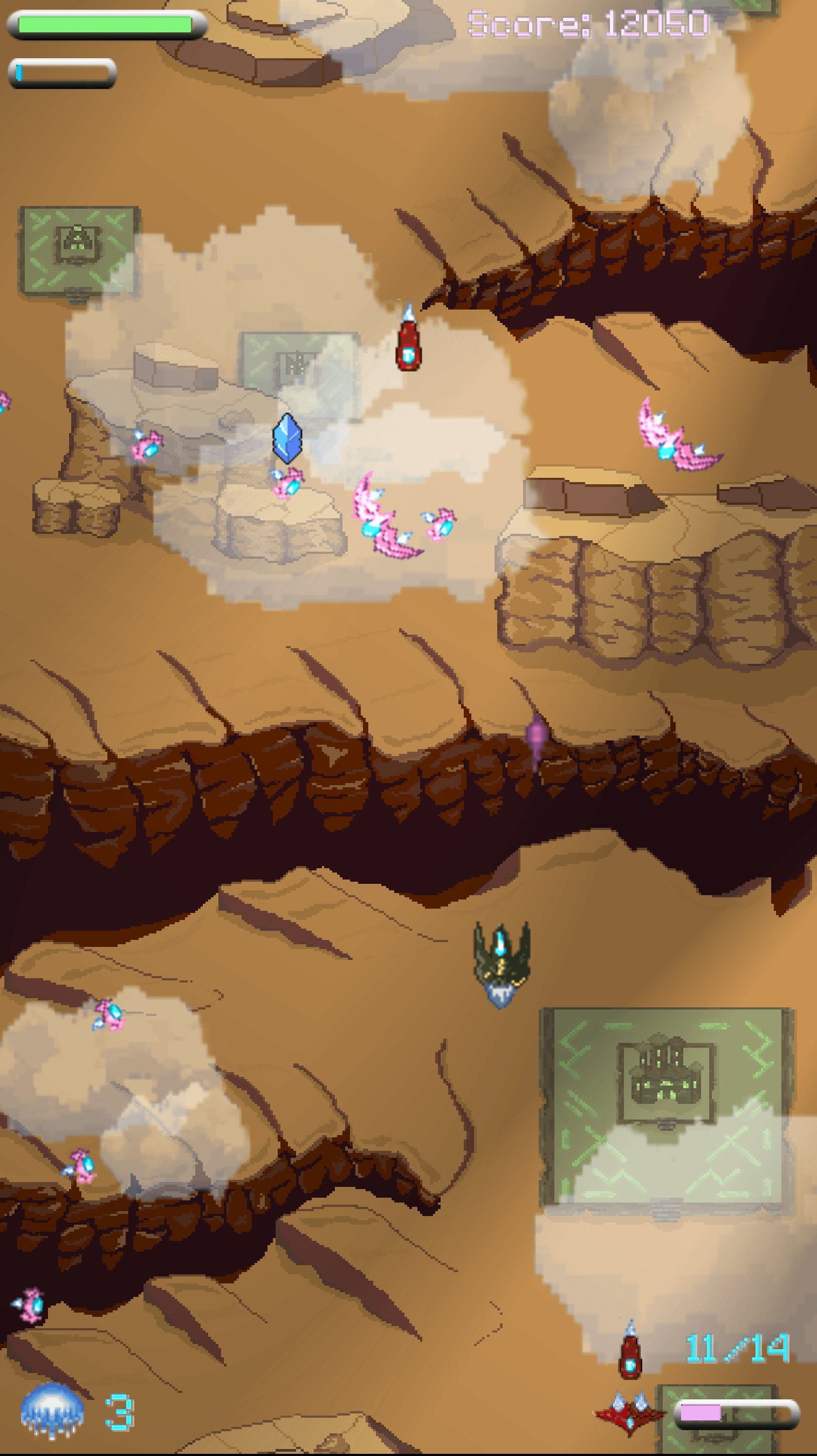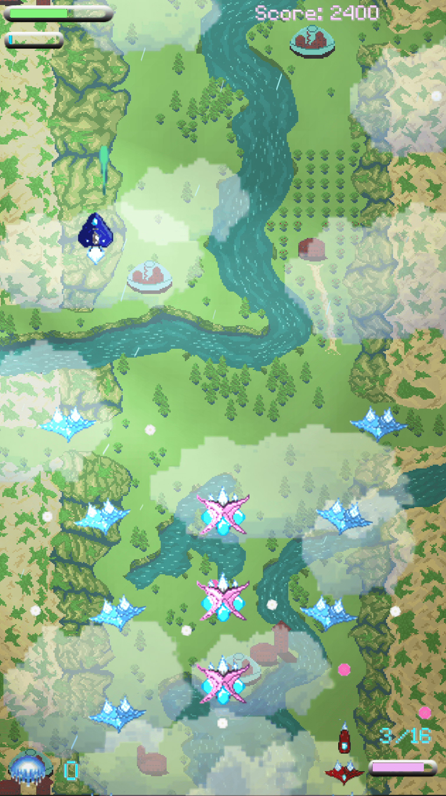 - I was able to keep the classic space shooter feel while implementing my new mechanics. Not being able to shoot everything on screen really changes the tone and feel of the game.
