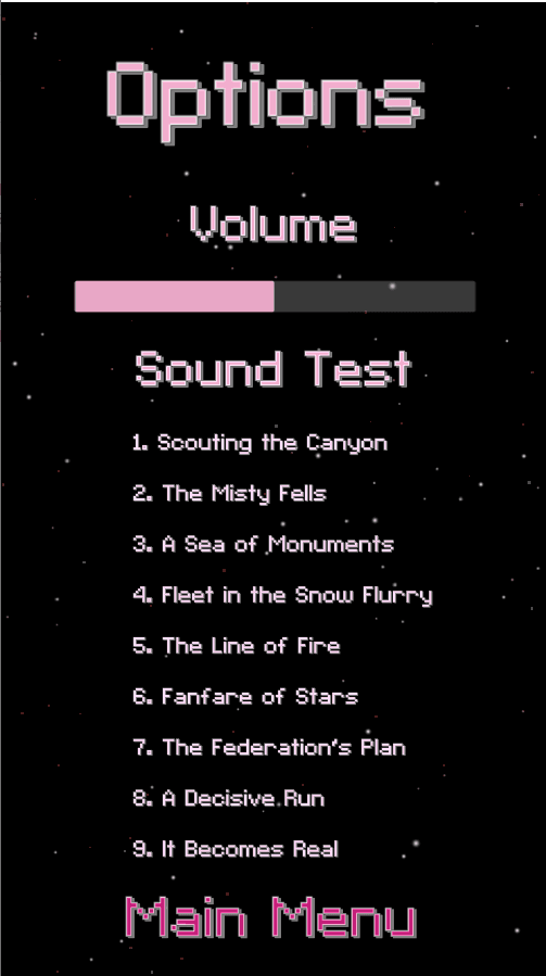- I really thought I wanted a retro soundtrack, but it turns out I didn’t. The audio for this game is largely 8-bit (with some 16-bit here and there). I think a better fit would have been to go full 16-bit or maybe even full synth with no restrictions on “game era sound.” There is some tone leading in the songs that would work much better if I were able to make the tones softer. Also, this is probably possible if I choose to become a better sound engineer.