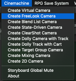 - Open the Cinemachine menu in Unity and create a free look camera.